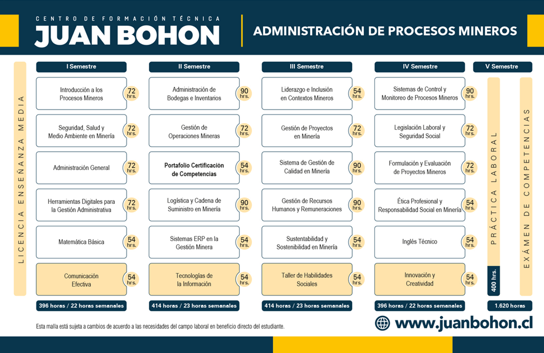 Asimismo, puede integrarse en departamentos de control de gestión, mantenimiento, salud ocupacional y medioambiente, contribuyendo a la mejora continua de la operación minera. Su perfil le permite también colaborar en la coordinación de recursos humanos y materiales, garantizando el cumplimiento de normativas y estándares de calidad y seguridad vigentes.
